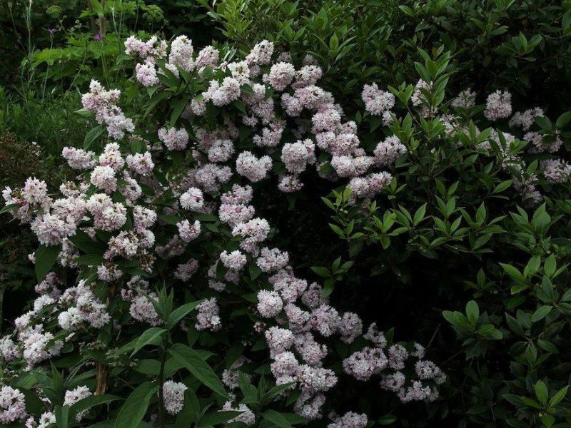 Кустарник достигает высоты до 2,5 метров и имеет компактную, густую крону, что делает его идеальным для создания живых изгородей, бордюров или одиночных посадок. Листья дейции Пинк Пом Пом – темно-зеленые, овальной формы, осенью приобретают красивый желтый оттенок.