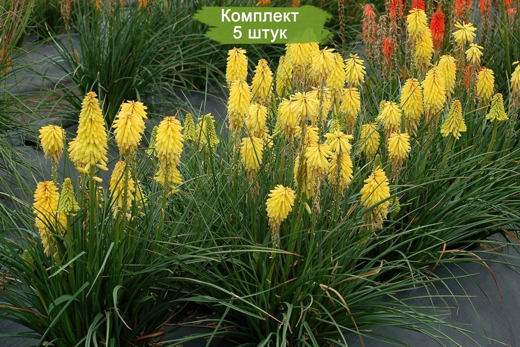 В комплект входит 5 саженцев книфофии ягодной Доктор Керр, готовых к высадке в открытый грунт.