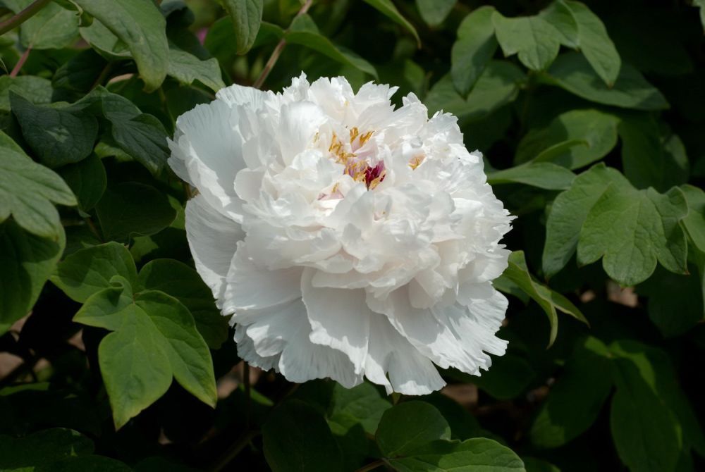 Пион древовидный "Fragrant Jade" не требует особого ухода, но для обильного цветения рекомендуется регулярный полив, особенно в засушливые периоды, и подкормка удобрениями весной и осенью. Обрезка проводится после цветения для формирования куста и удаления отцветших бутонов.